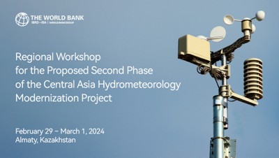 The workshop will feature discussions on the challenges and prospects of advancing regional hydromet cooperation, including speakers from the World Bank, the World Meteorological Organization, and regional entities such as Executive Committee of the International Fund for Saving the Aral Sea and the Regional Center for Hydrology. Key areas for workshop discussion include the enhancement of hydromet infrastructure, data collection, processing, forecasting, warning dissemination, and service delivery.