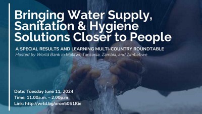 Join the World Bank for this hybrid multi-country roundtable event for Malawi, Tanzania, Zambia, and Zimbabwe, focused on bringing water supply, sanitation, and hygiene (WASH) solutions closer to people. Speakers will include government officials, WASH sector representatives, civil society organizations, and community members, sharing best practices and lessons learned about sustainable WASH interventions.