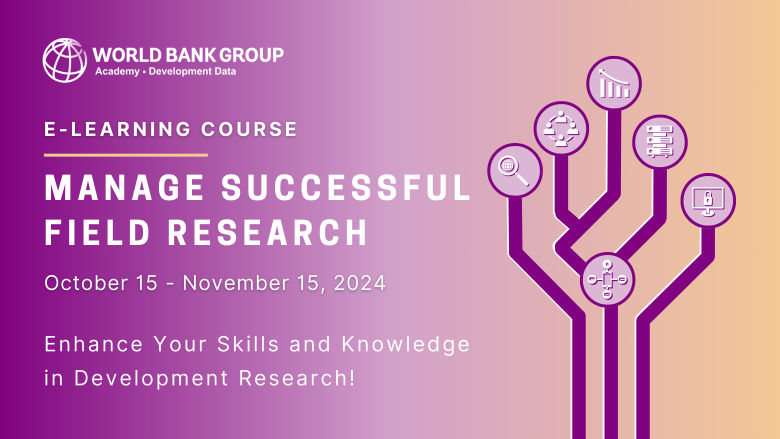 The Manage Successful Field Research e-learning course is designed to enhance the skills and knowledge of research practitioners and partners in development research. This comprehensive course covers all aspects of implementing field research, from preparation to execution, focusing on best practices, critical issues, recurring challenges, and the latest technologies.