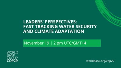 Join ministers and global leaders in a discussion on how to address the climate-driven global water crisis, one of the most urgent challenges to sustainable development. Discover how the World Bank Group is implementing a bold strategy, forming new partnerships, and advancing solutions through its Fast Track Water Security and Climate Adaptation Global Challenge Program.