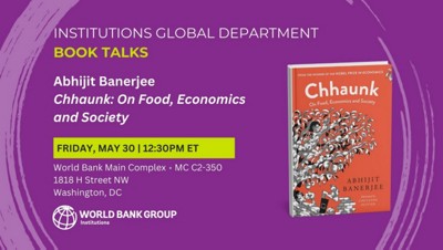 On Friday May 30, 2025, the World Bank's Governance Global Department Book Talks welcomed Abhijit Banerjee to present his book Chhaunk Food, Economics and Society. Watch the Replay.