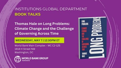 On Wednesday May 7, 2025, the World Bank's Governance Global Department Book Talks welcomed Thomas Hale and his presentation on his book, Long Problems: Climate Change and the Challenge of Governing Across Time.