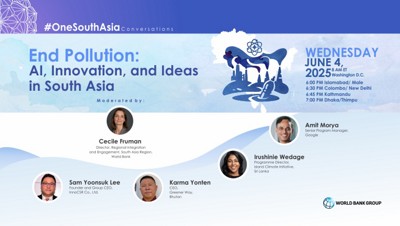 Our #OneSouthAsia conversation is a part of an ongoing bi-monthly series that explores ideas for regional cooperation in economic connectivity, climate change, and human development in South Asia. The online conversation will broadcast on the World Bank Group Live, and is a public event, which does not require pre-registration. The event is targeted toward a mixed audience including policy makers, regional influencers and stakeholders, academic institutes, civil society organizations, private sector, and the general population in South Asia.
