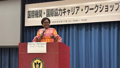 2025年6月17日、上智大学四ツ谷キャンパスで開催された「国際機関・国際協力キャリアワークショップ」(主催:上智大学、共催:上智大学国際協力人材育成センター)に、マーシー・テンボン世界銀行副総裁兼官房長が登壇しました。
