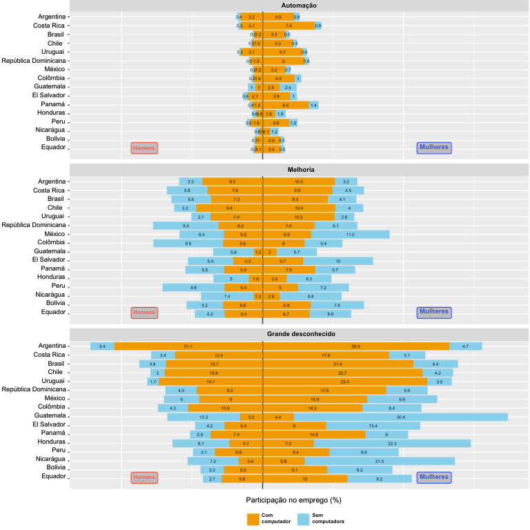 Mulheres que trabalham em áreas urbanas, são mais jovens, não são pobres, atuam em setores formais (principalmente nos setores bancário, de finanças ou administração pública), ou que tenham maior grau de instrução, estão mais expostas à automação pela IAGen. A possível perda de empregos bem remunerados, formais e qualificados causada pela automação possibilitada pela IAGen em setores dominados por mulheres teria impactos negativos para as já altamente desiguais e informais economias na região.
